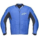 | ✚✚✚ Alpinestars SP-1 Perforated Leather Jacket, Primary Color: Blue, Apparel Material: Leather, Size: 54 3100797054 1.2-1.4mm full-grain leather for excellent abrasion resistance Perforated leather panels for increased cooling Multiple-stitched main seam construction for maximum tear resistance Removable CE certified soft protectors Ergonomically placed stretch Kevlar® panels for optimal flexibility Velcro® waist adjustment straps Leather flex zones Waist connection zipper allows attachment to selected Alpinestars leather and textile pants MotoGP profile, ventilated sport hump for improved aerodynamic and ventilation performance Soft neoprene comfort cuff and collar construction Chest pad compartments with PE protection (Alpinestars Bionic chest guards available as accessory upgrade) YKK Semi Auto Lock zippers Removable thermal vest liner Multi-paneled lining construction Die cut ventilation Die-cut 3D front chest logo Back protector compartment with PE padding (CE certified RC back protector available as accessory)