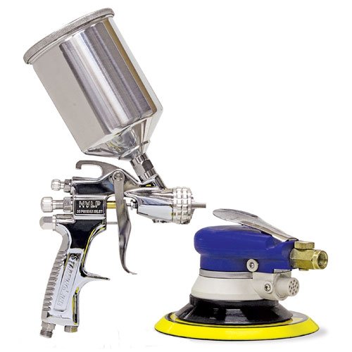 Devilbiss Autobody Prep Kit Paint Gun Plus Sander Now the tools you need to prep are car are all bundled together in this great kit from Devilbiss. Kit includesHVLP 1.8 Startingline primer gun - with a 600cc aluminum cup PLUS6" 8,500 rpm random orbital palm sander - with 6" hook and loop pad, 4 sanding discs in 80, 150, 240 and 320 grits. Also included are two wrenches and packaged in a handy storage box Keep this kit handy for spot repairs and complete paint jobs, once you use it you won't know how you got by without it. 1 year MFG warranty, Imported.